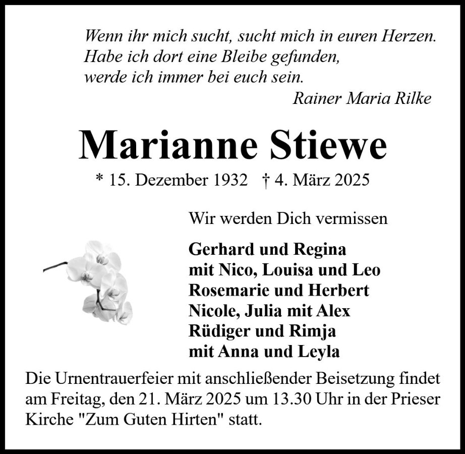 Als ich die Todesanzeige las, hatte ich sie wieder vor Augen und es kamen schöne Erinnerung hoch , an eine richtig liebe Frau Stiewe.